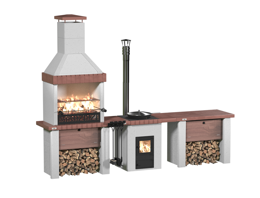 Комплект для готовки на открытом воздухе и в беседке - это надежное, функциональное и стильное решение, которое позволит вам с легкостью готовить вкусные блюда и наслаждаться приятной компанией. Он идеально подходит для различных мероприятий, будь то семейные посиделки, дружеские вечера или праздничные застолья. Благодаря прочным материалам и качественной сборке, этот комплект будет служить вам долгие годы, оставаясь надежным и стильным акцентом на вашей территории барбекю.. Включающий в себя печь-барбекю "Принц", печь под казан "Князь", разделочный стол "Боярин", декоративные дверцы, решетку-гриль, набор для печи и чугунный казан 10 л. Этот комплект обеспечит вам все необходимое для комфортного приготовления вкусных блюд на свежем воздухе.