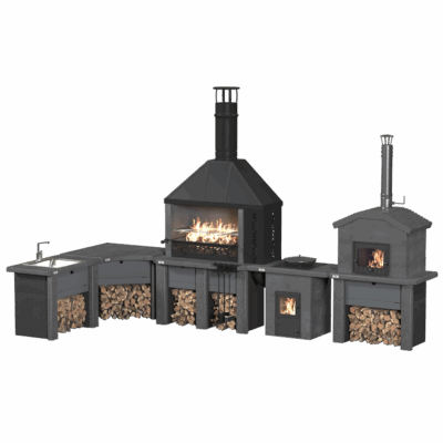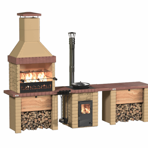 Включающий в себя печь-барбекю "Принц", печь под казан "Князь", разделочный стол "Боярин", 2 комплекта декоративных накладок, декоративные дверцы, решетку-гриль, набор для печи и чугунный казан 10 л. , этот комплект обеспечит вам все необходимое для комфортного приготовления вкусных блюд на свежем воздухе.