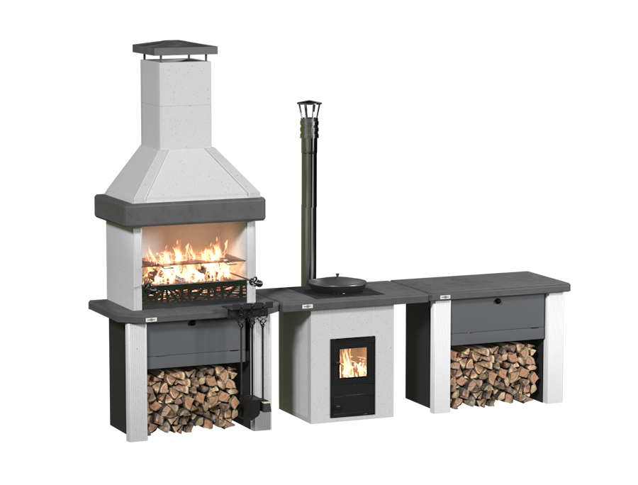 Комплект для готовки на открытом воздухе и в беседке - это надежное, функциональное и стильное решение, которое позволит вам с легкостью готовить вкусные блюда и наслаждаться приятной компанией. Он идеально подходит для различных мероприятий, будь то семейные посиделки, дружеские вечера или праздничные застолья. Благодаря прочным материалам и качественной сборке, этот комплект будет служить вам долгие годы, оставаясь надежным и стильным акцентом на вашей территории барбекю.. Включающий в себя печь-барбекю "Принц", печь под казан "Князь", разделочный стол "Боярин", декоративные дверцы, решетку-гриль, набор для печи и чугунный казан 10 л. Этот комплект обеспечит вам все необходимое для комфортного приготовления вкусных блюд на свежем воздухе.