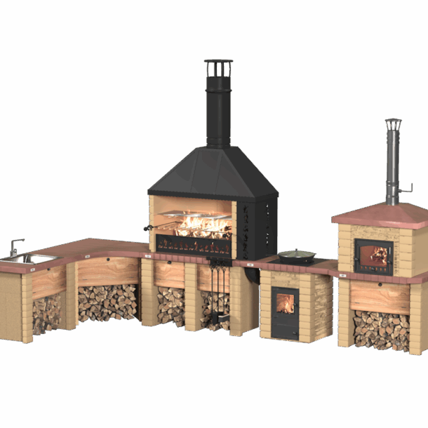 Идеальный комплект для приготовления на открытом воздухе и в беседке! Включает объединенную Царь-печь, русскую печь "Крестьянка", стол-мойку "Боярыня", разделочный стол угловой, 4,5 комплекта декоративных накладок, комплект декоративных дверок, решетку-гриль "Царь-печь", казан на 10 литров, пекарский камень и набор для печи. Объединенная Царь-печь превосходно подойдет для блюд-гриль и шашлыки для настоящих гурманов. Русская печь "Крестьянка" идеальна для пиццы, мяса в горшочках, каш и супов. Мойка из металла облагородит зону барбекю, позволяя легко мыть овощи и убирать остатки пищи с гриля. Разделочный стол угловой, выполненный из экологически чистых и безопасных материалов, идеально дополнит ваш барбекю-комплекс. Создайте уютную и функциональную зону барбекю, чтобы наслаждаться вкусными блюдами с комфортом.